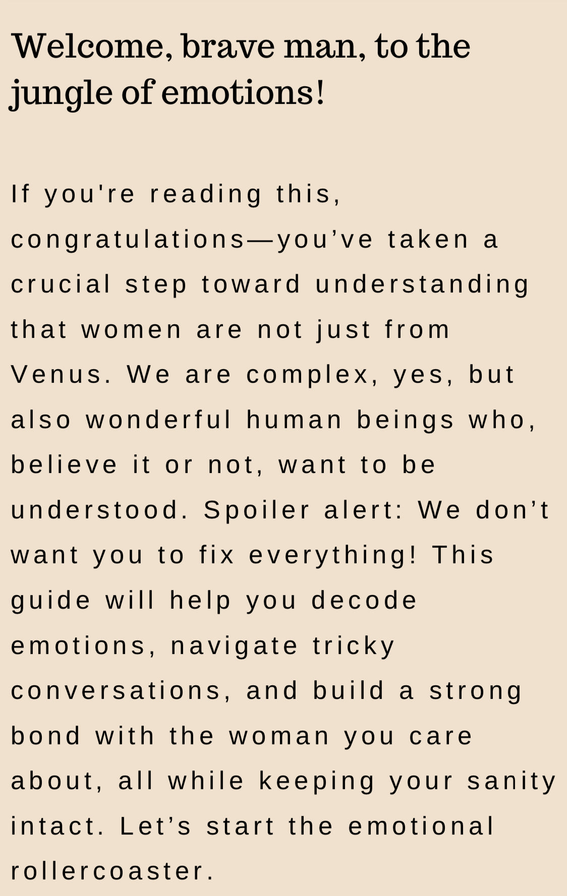 Understanding Women: A Guide to Emotional Intelligence is the ultimate handbook for men who want to strengthen their relationships by truly understanding how women communicate, think, and feel. Written by lingerie model and confidence coach Shawntel the Prototype, this ebook breaks down emotional intelligence, helping men navigate conversations, decode unspoken cues, and respond in ways that build deeper connections. Whether you're dating, in a relationship, or just want to improve your interactions with women, this guide offers practical insights to help you communicate with confidence, empathy, and clarity!
